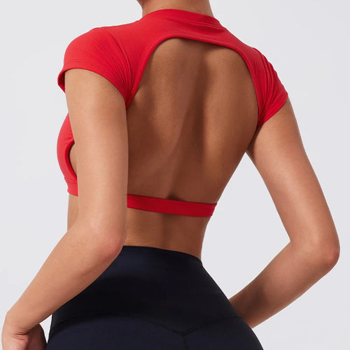 Hearuisavy Sports Shirts Workout Tops Fitness Activewear Female Quick-Dry Yoga Clothes Sport Crop Tops Backless Gym Top Women